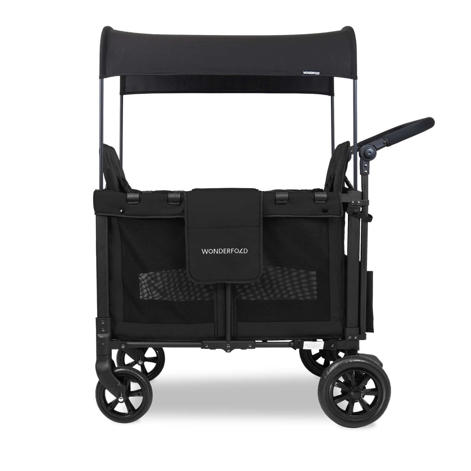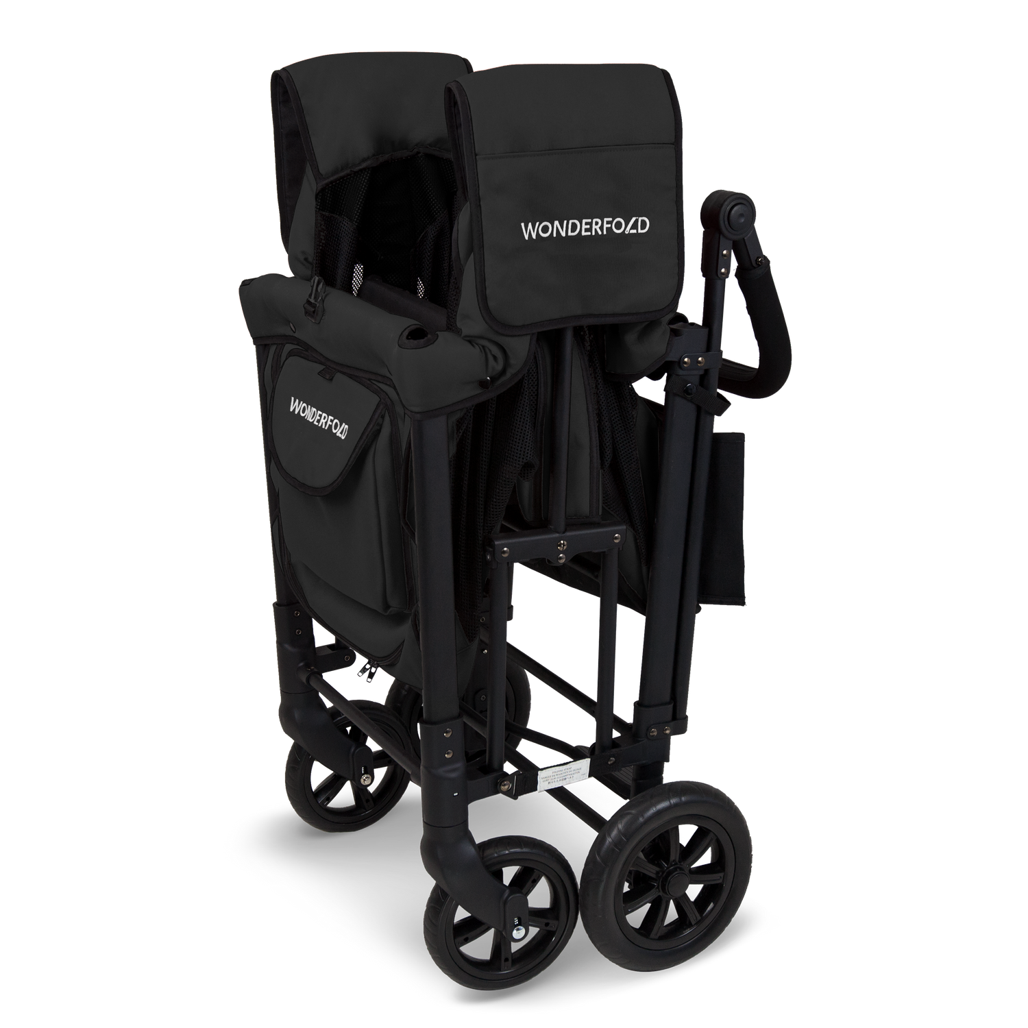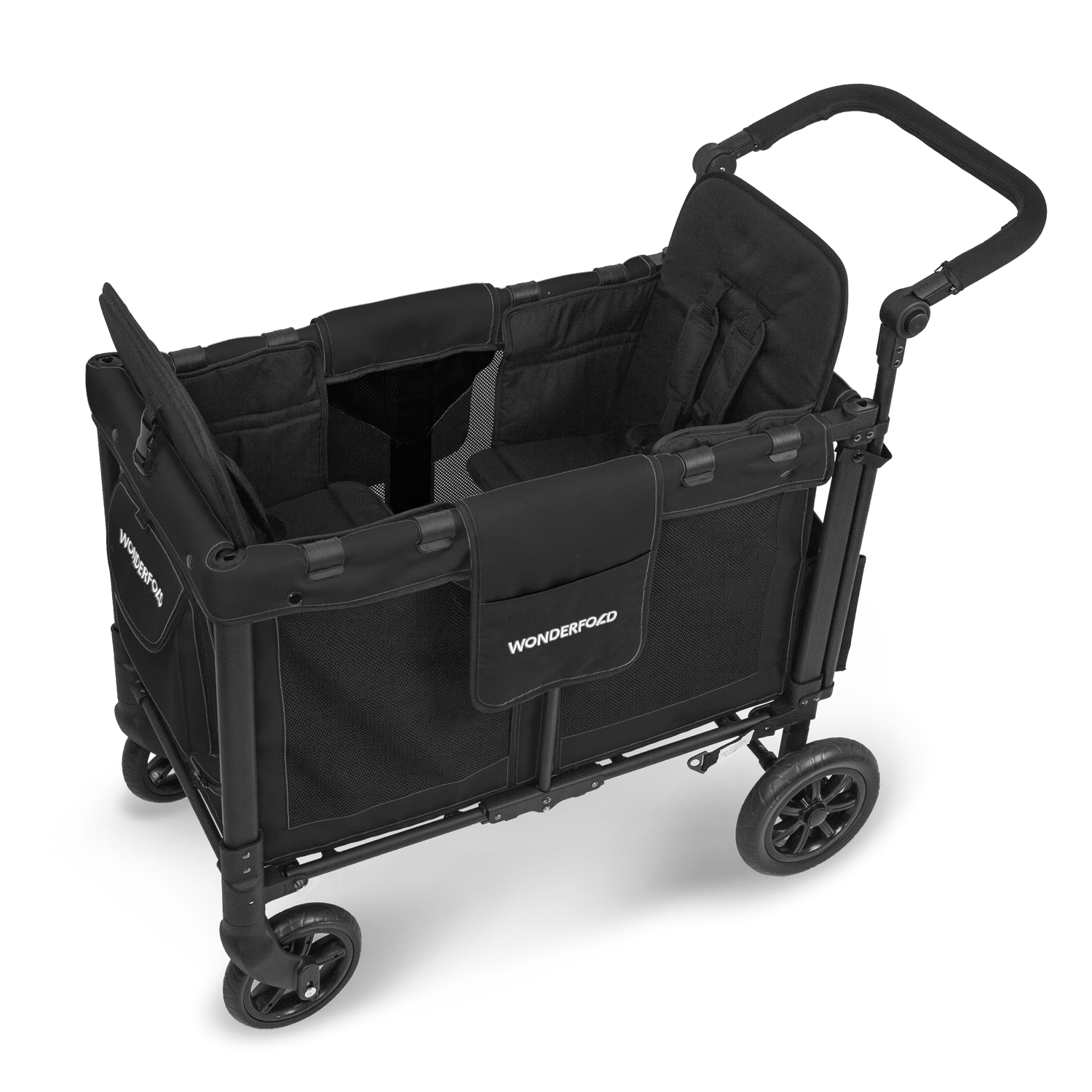 The perfect double stroller wagon for all of your adventures, now with a wider width for extra space and comfort! This stroller seats two children with removable, raised seats and 5-point harnesses with padded straps.